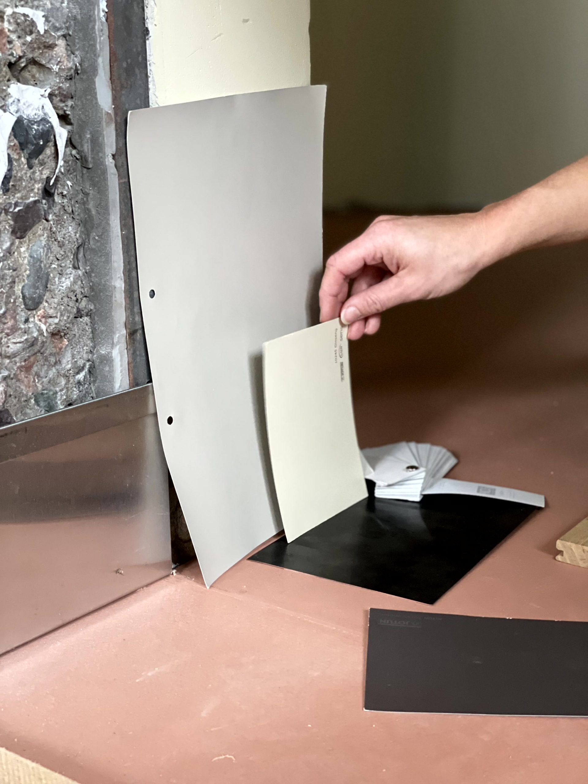 I arbeid med dynamiske prosjekter, som et ombruksprosjekt er, er det viktig med et konsept som tillater små og store endringer underveis. En varig og nøytral basepalett danner en solid ramme for konseptet. Den gir rom for gjenbruk av ulike materialer, farger og tekstiler, og er tilpasningsdyktig overfor det man måtte komme over av restmaterialer. Konseptet og paletten kan dermed vokse og utvikle seg parallelt med at prosjektet tar form, og legger til rette for en dynamisk berikelse av materialiteten i prosjektet.
