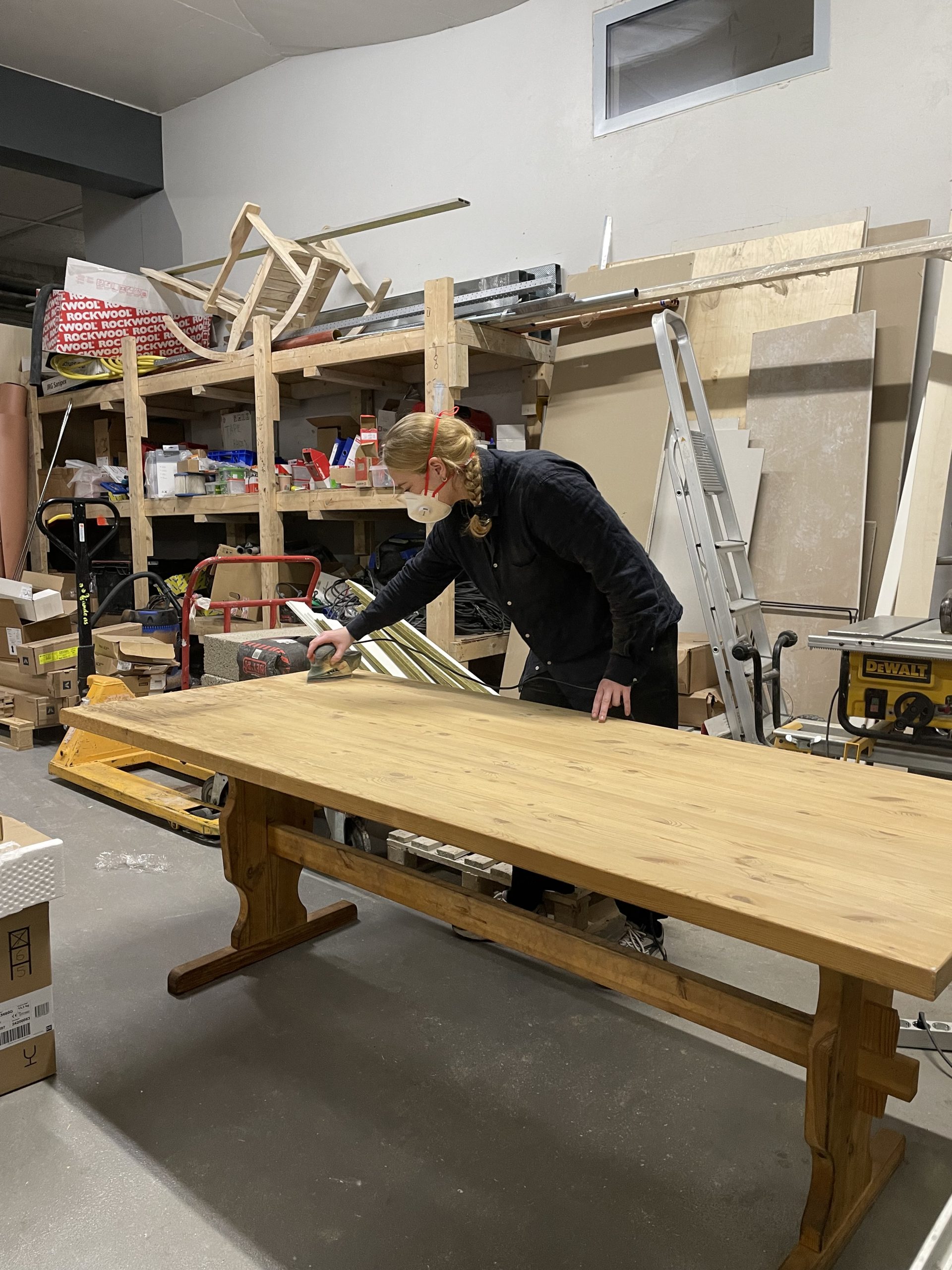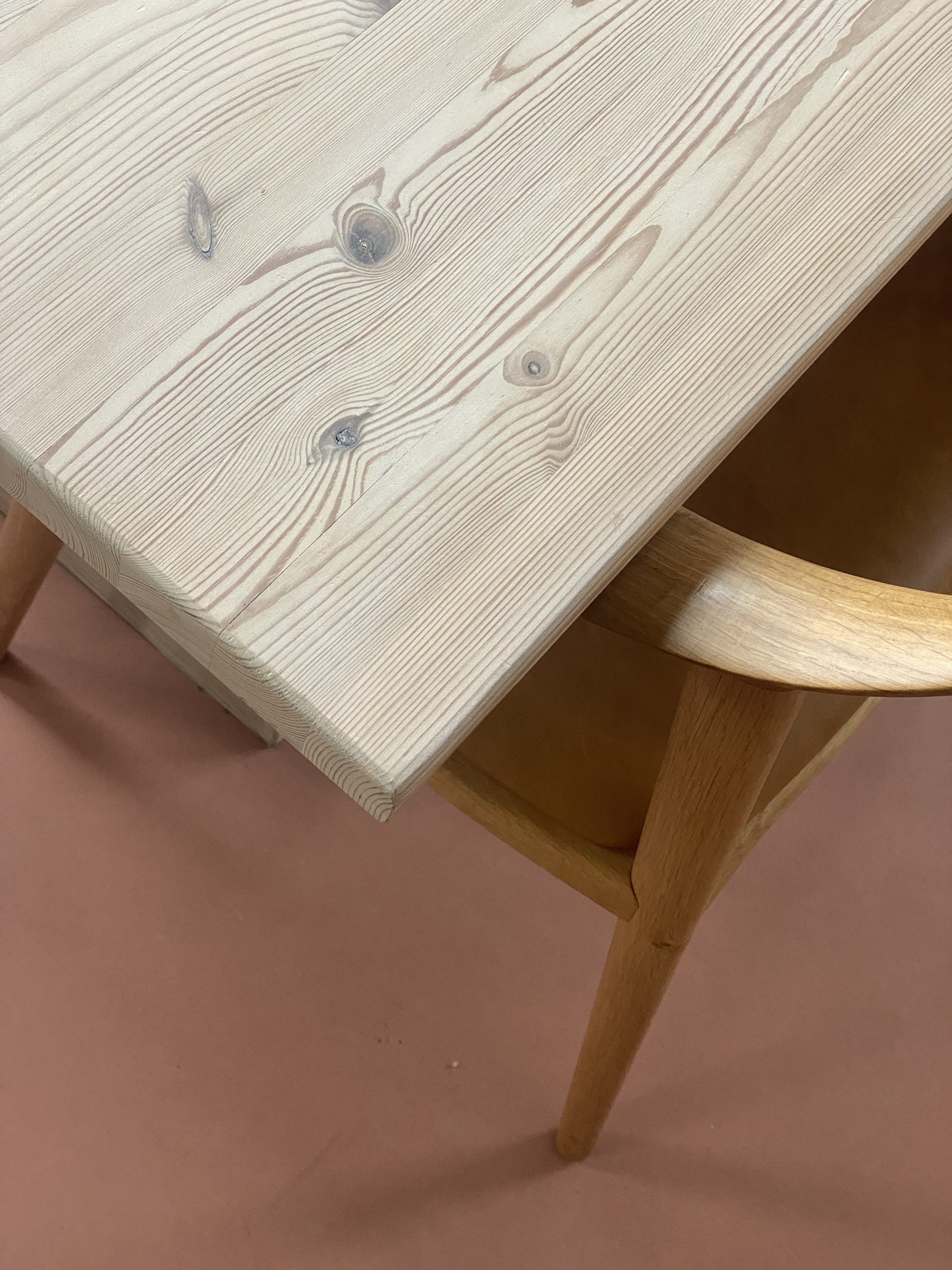 - Et bord hentet på Finn.no i heltre furu som blir pusset opp i ekte dugnadsånd. Foto: IARK