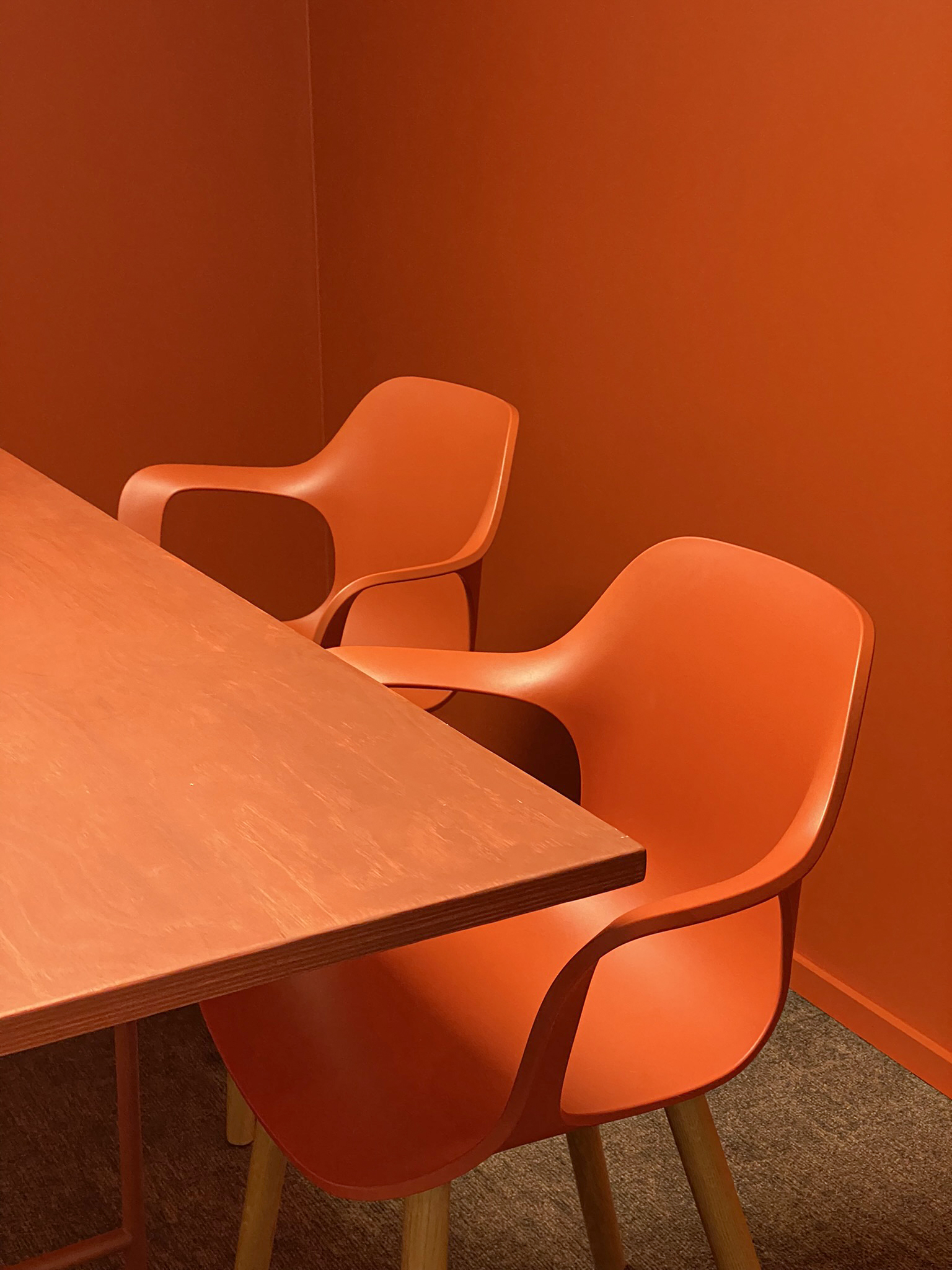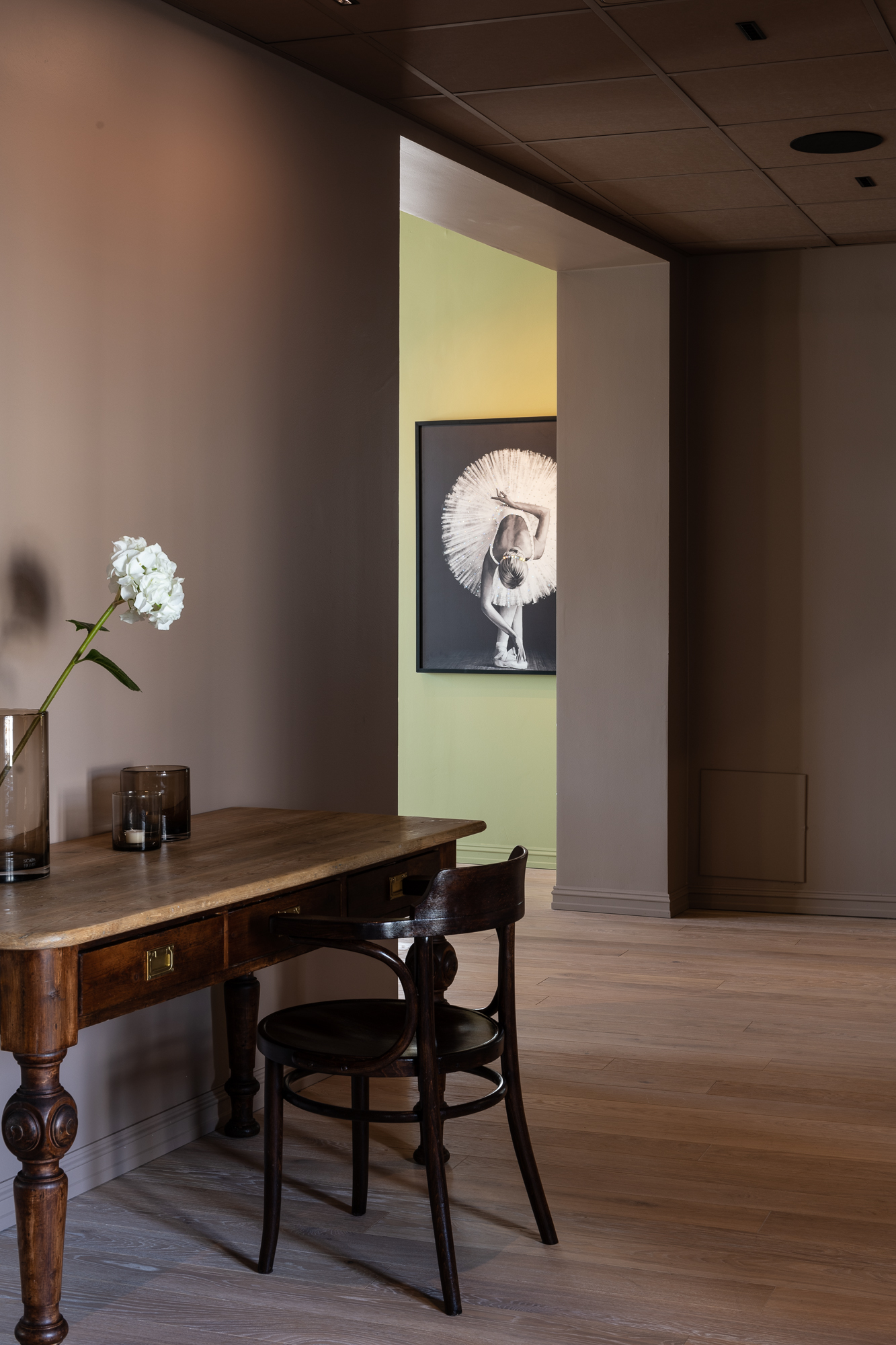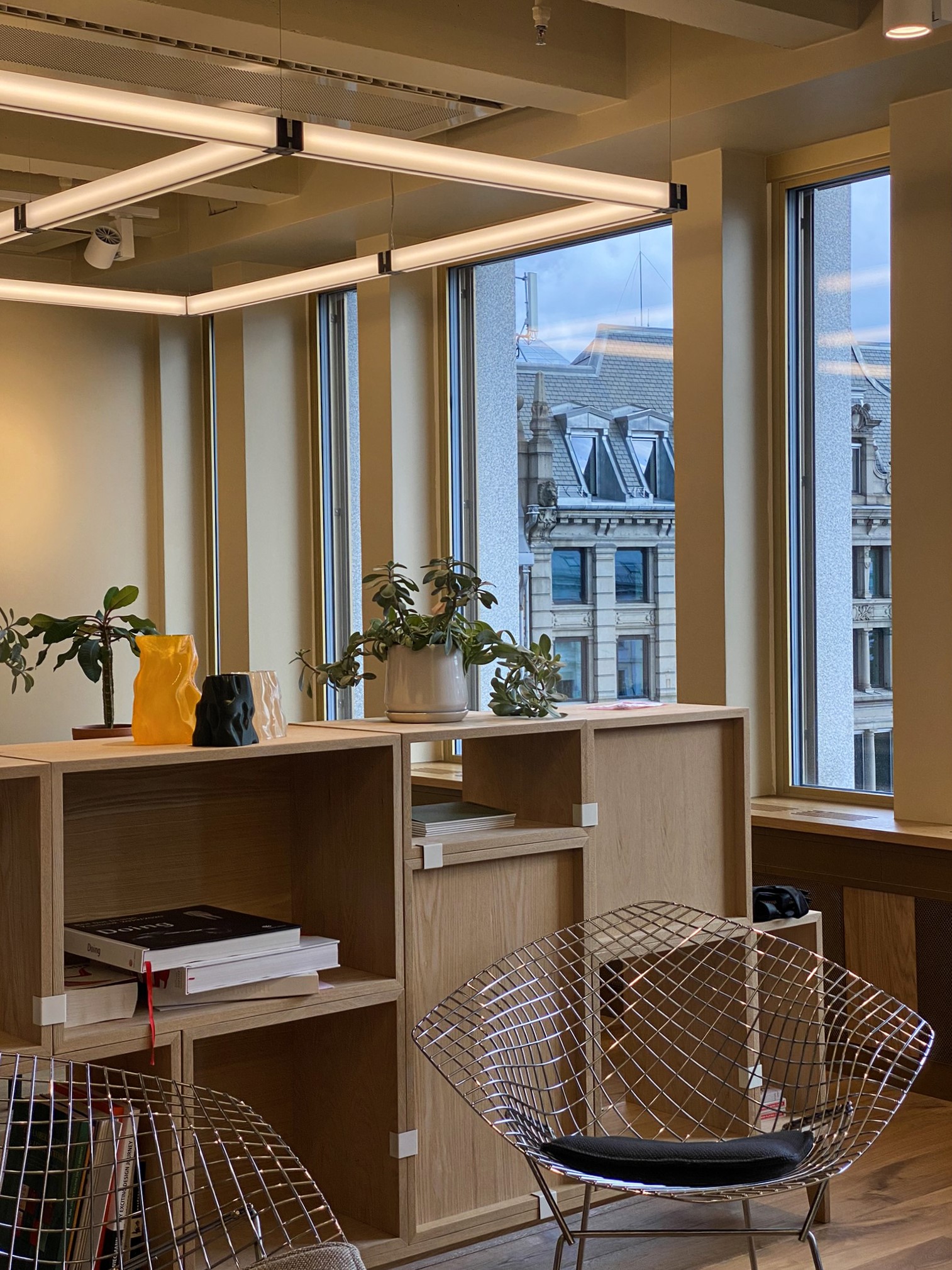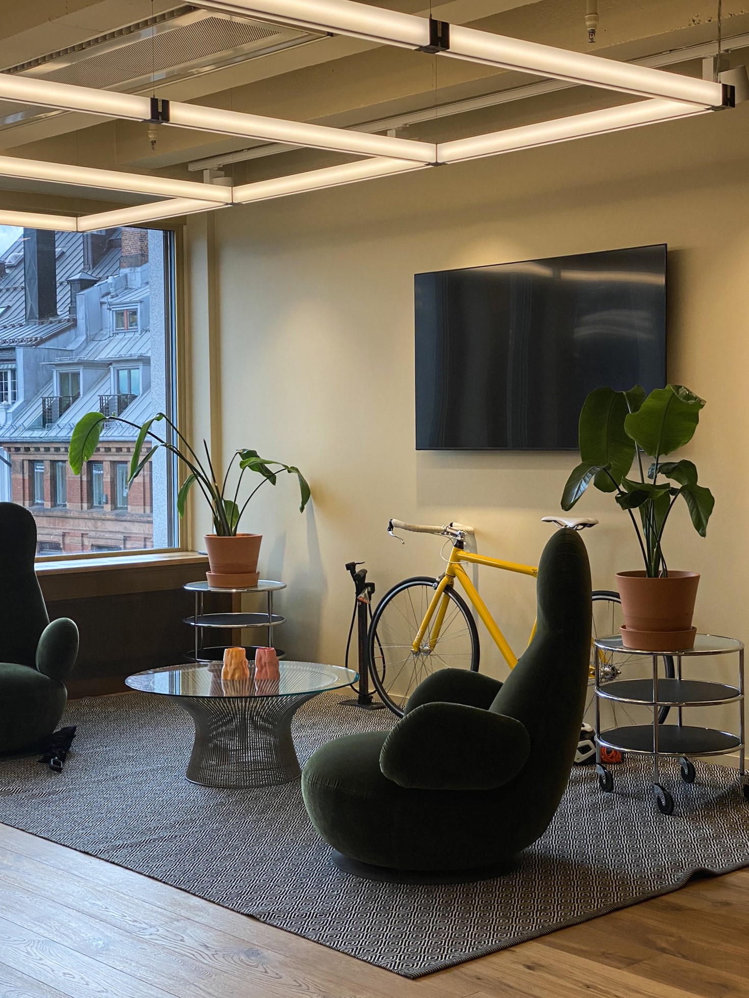 - Restaurerte møbler tilfører en ekstra dimensjon til lokalene til eventbyrået Off Piste. Foto: Niklas Hart