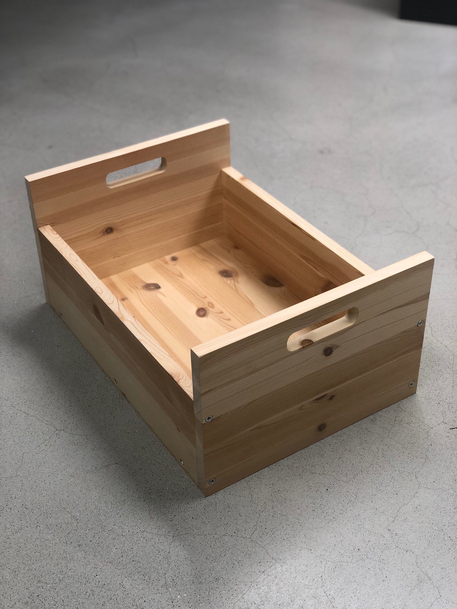 - Oppbevaringskasser bygd av gamle bokhyller. Foto: IARK