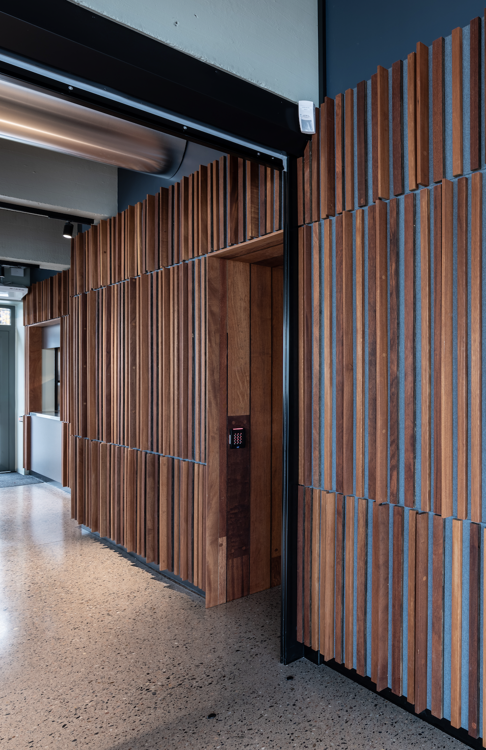 - Spilekledning er blitt til ved ombruk av tidligere panel, lister og gulv hos Oslo Havn. Foto: Hans Kristian Hagen Riise
