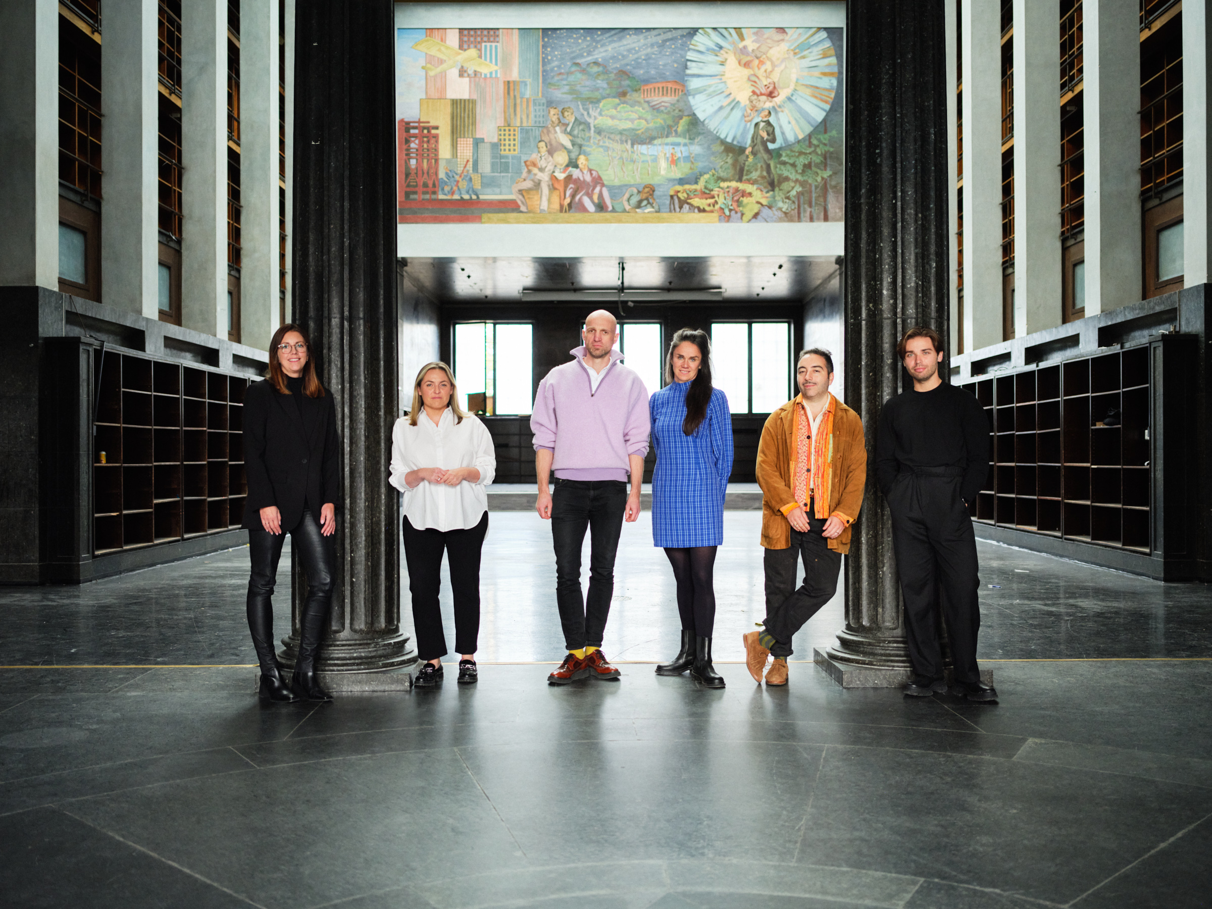 - Arkitekter og interiørarkitekter er godt i gang med arbeidet på gamle Deichmanske. t.v Kristine Nilsen, Mariann Paulsen fra Paulsen & Nilsen, Tomas Rønhovde og Ingjerd Daae Dring fra Lundhagem, Adam Greco og Chris Ogren fra GrecoDeco.