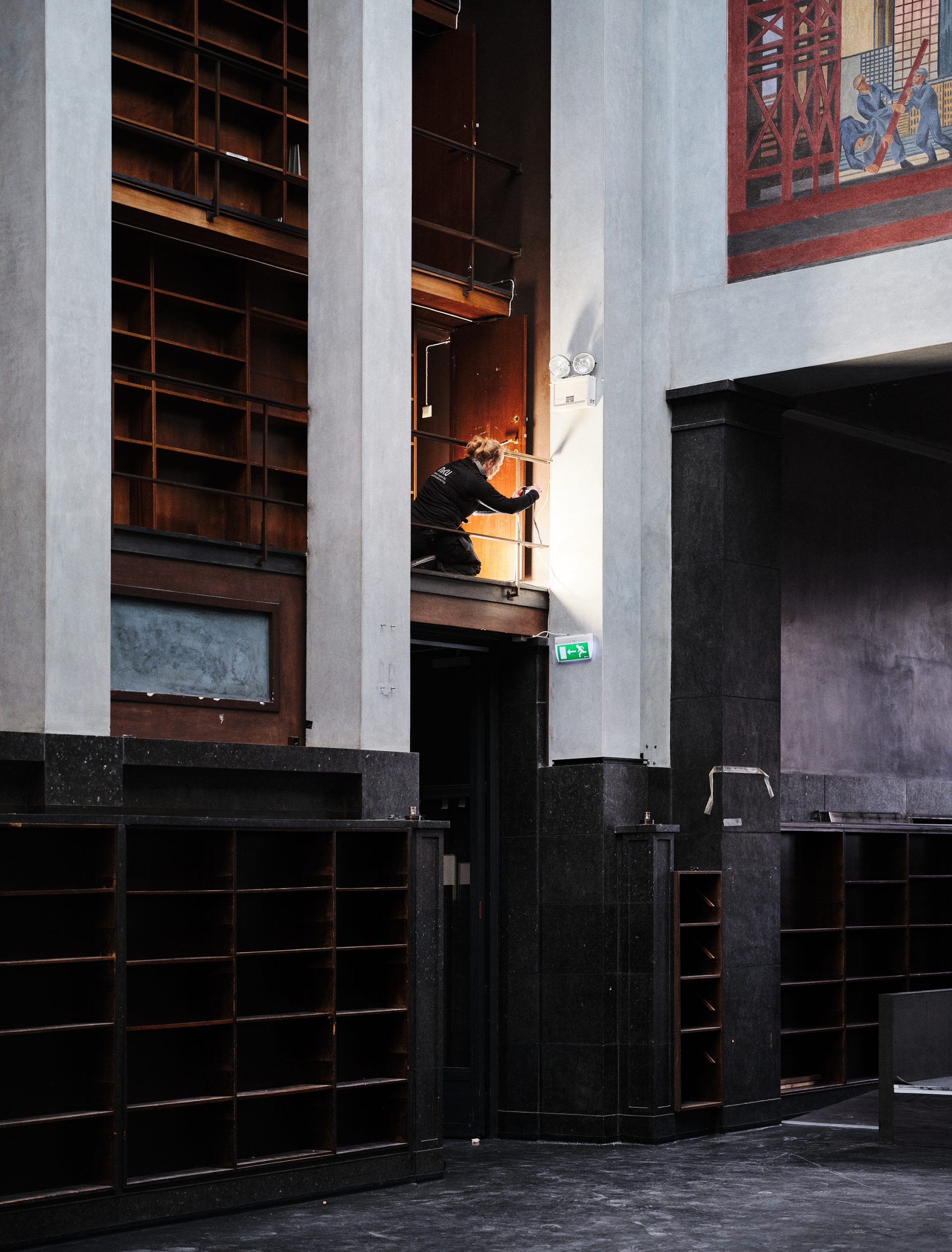- Hovedsalen ble pakket ned for bøker og nå står gamle bøker og møbler på lager i Drammen. Bygget skal gi Oslo 14.000 kvadratmeter med fotoopplevelser, mat og møteplasser. Etter nesten hundre år med hvisking i biblioteket, skal vi endelig åpne opp og skru opp volumet.