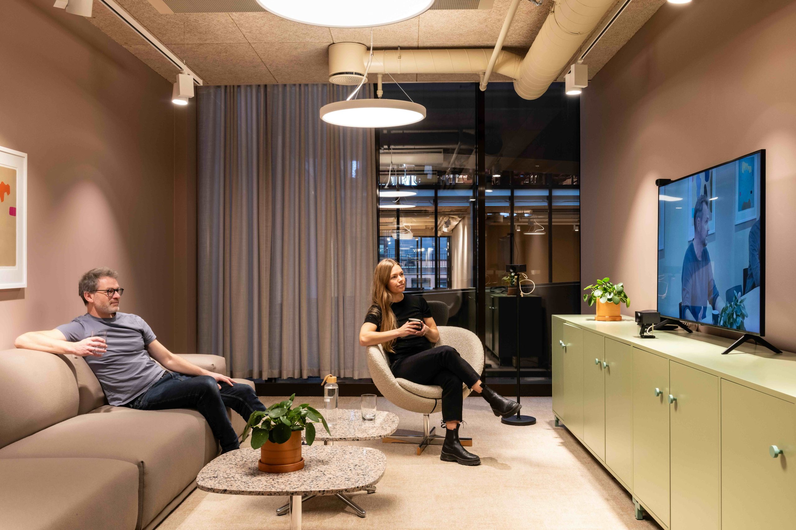 Den viktigste driveren for å gå på jobb er å møte kolleger. Da må kontoret legge til rette for dette i langt større grad enn tidligere. I korte trekk må arealer for samhandling økes, mens arealer for arbeidsplasser med hev / senk reduseres. Våre erfaringer etter pandemien forteller oss at kontorer med en sydende atmosfære er en driver som fører til økt oppmøte på den fysiske arbeidsplassen, mens et tomt og stille kontor gjør det motsatte. Faktisk fører det til nedgang i folk som ønsker å møte opp på jobb. Man drar på kontoret med en forventning om å møte kolleger og venner. Dersom det motsatte skjer, er det mindre sannsynlig at du dukker opp neste dag hvis du ikke må. Som organisasjon trenger man at folk møter opp på jobb. Fysisk. Vi trenger å møtes, og vi trenger gode møteplasser. Arbeidsmiljøet er det sosiale limet på jobb.