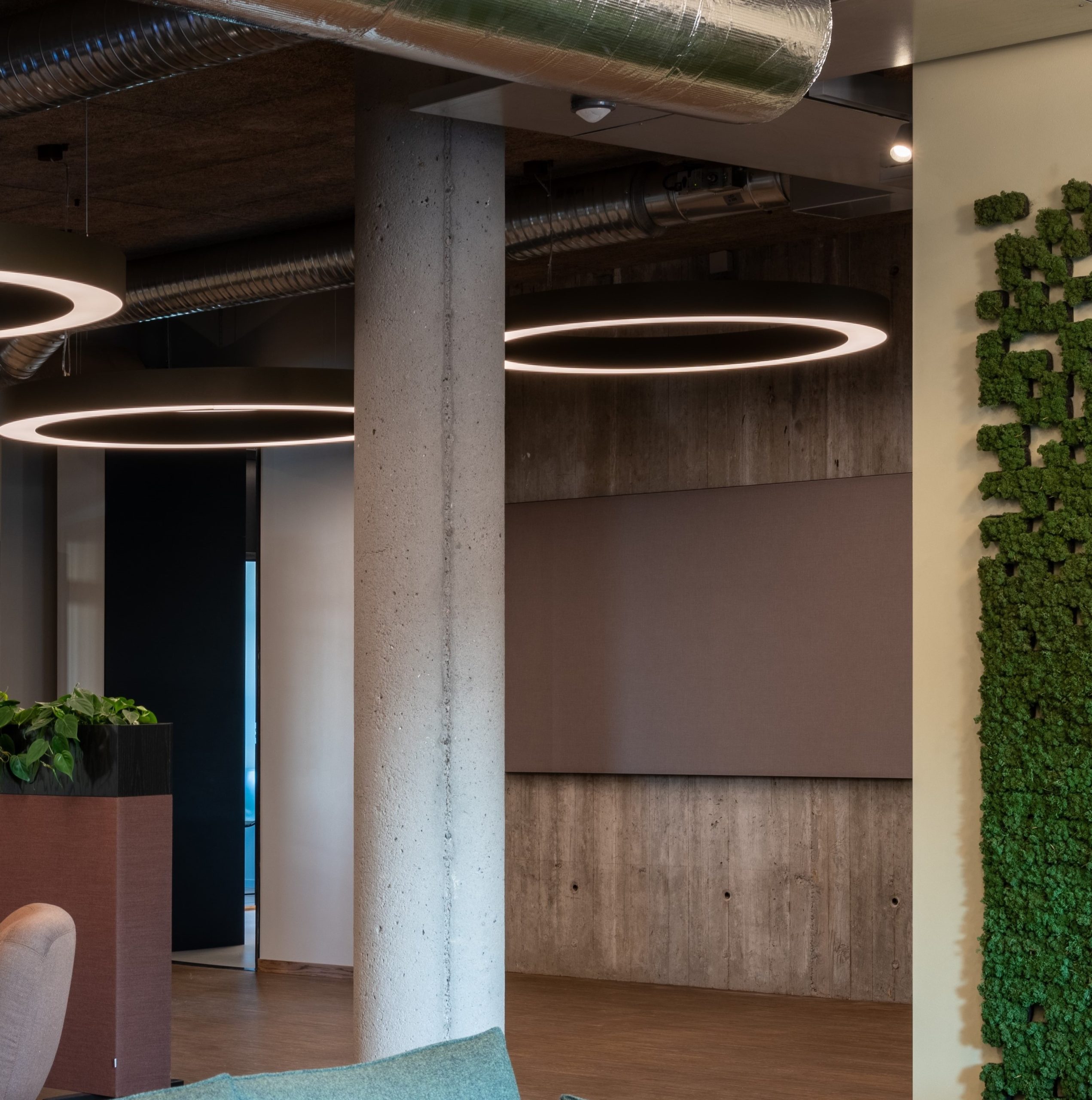 Yaras anlegg ved Herøya industripark i Porsgrunn, var et rehabiliteringsprosjekt som stod ferdigstilt i 2023. Til sammen ble 4 etasjer renovert, og i prosjektets startfase ble det oppdaget originale betongvegger i hele plan 1 og oppover i etasjene rundt byggets kjerner. På plan 1 var disse veggene i såpass god stand at de kunne brukes videre, men oppover i etasjene var dette dessverre ikke mulig, og løsningen da ble å male veggene i stedet. Her kunne løsningen ha blitt å legge ny puss eller betong, tilegne det litt ekstra patina, og på den måten imitere de originale flatene oppover. I stedet fremhevet valget om å male veggene kontrasten mellom eksisterende og nytt.