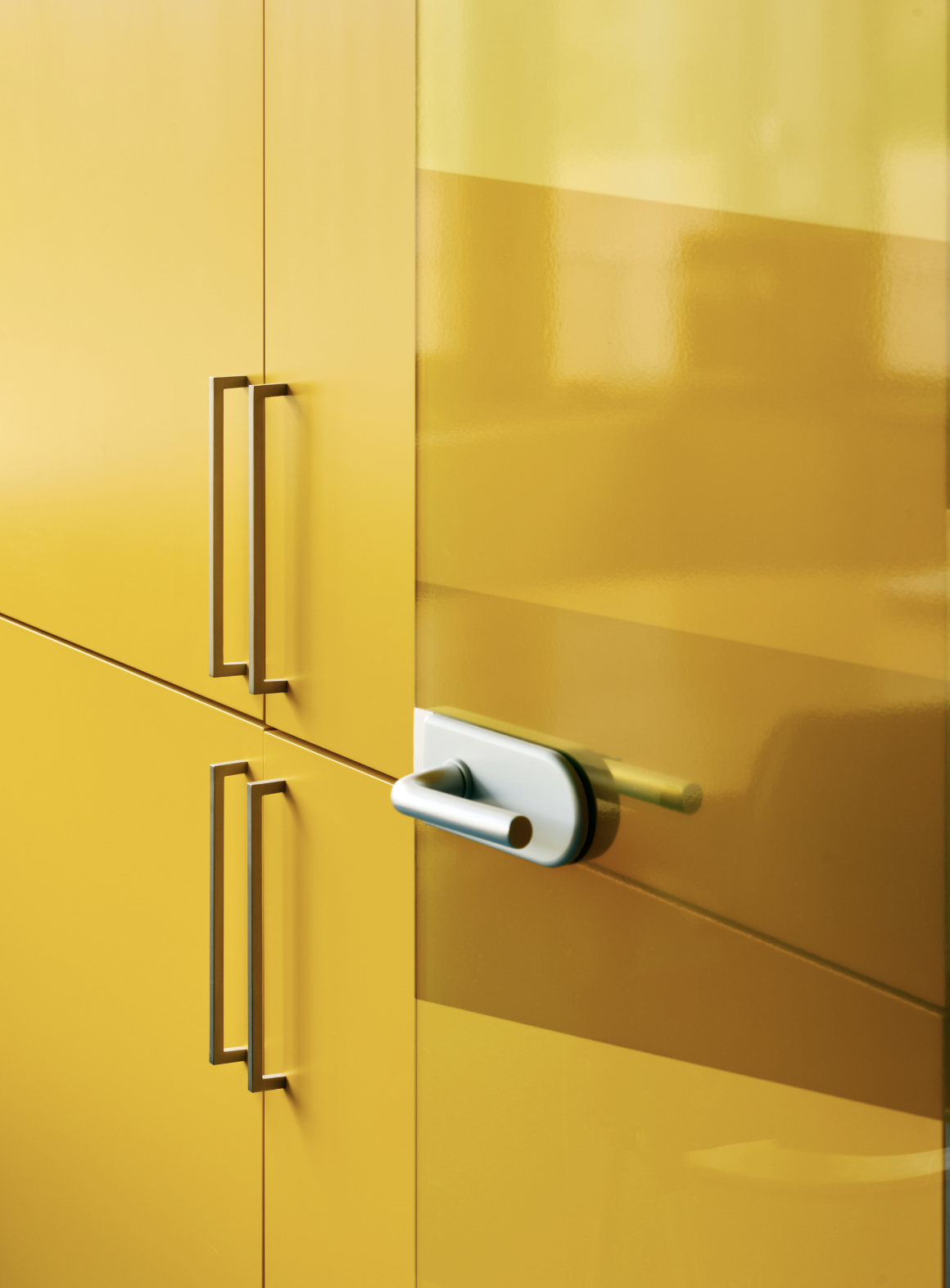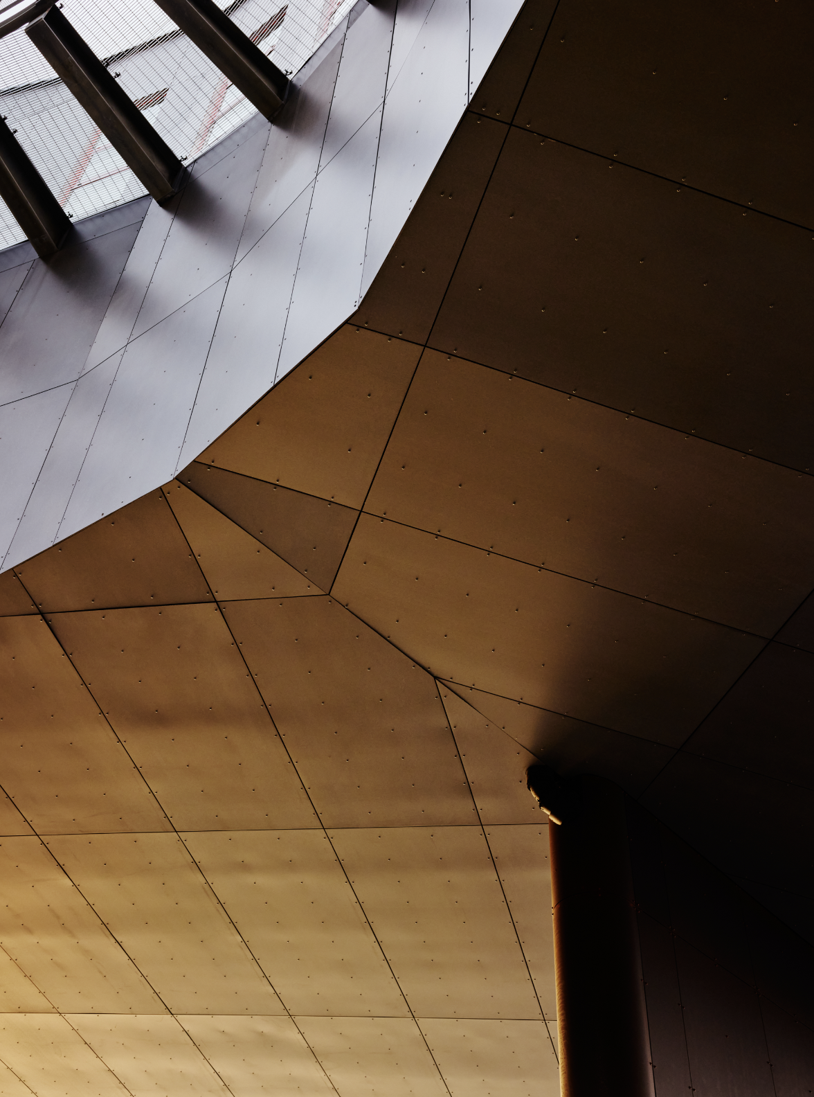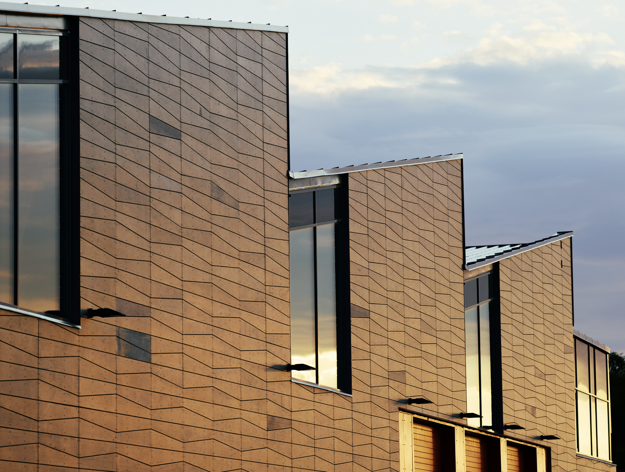 Den konvekse fasaden vendt mot havet er kledd i svart glass, delt opp av lameller i rustfritt stål. De vertikale elementene stikker diskret ut, forsterker refleksjonsevnen og tilfører dybde. Dermed speiler fasaden landskapet rundt og skaper et fargespill som endrer seg med lys, vær og årstid.