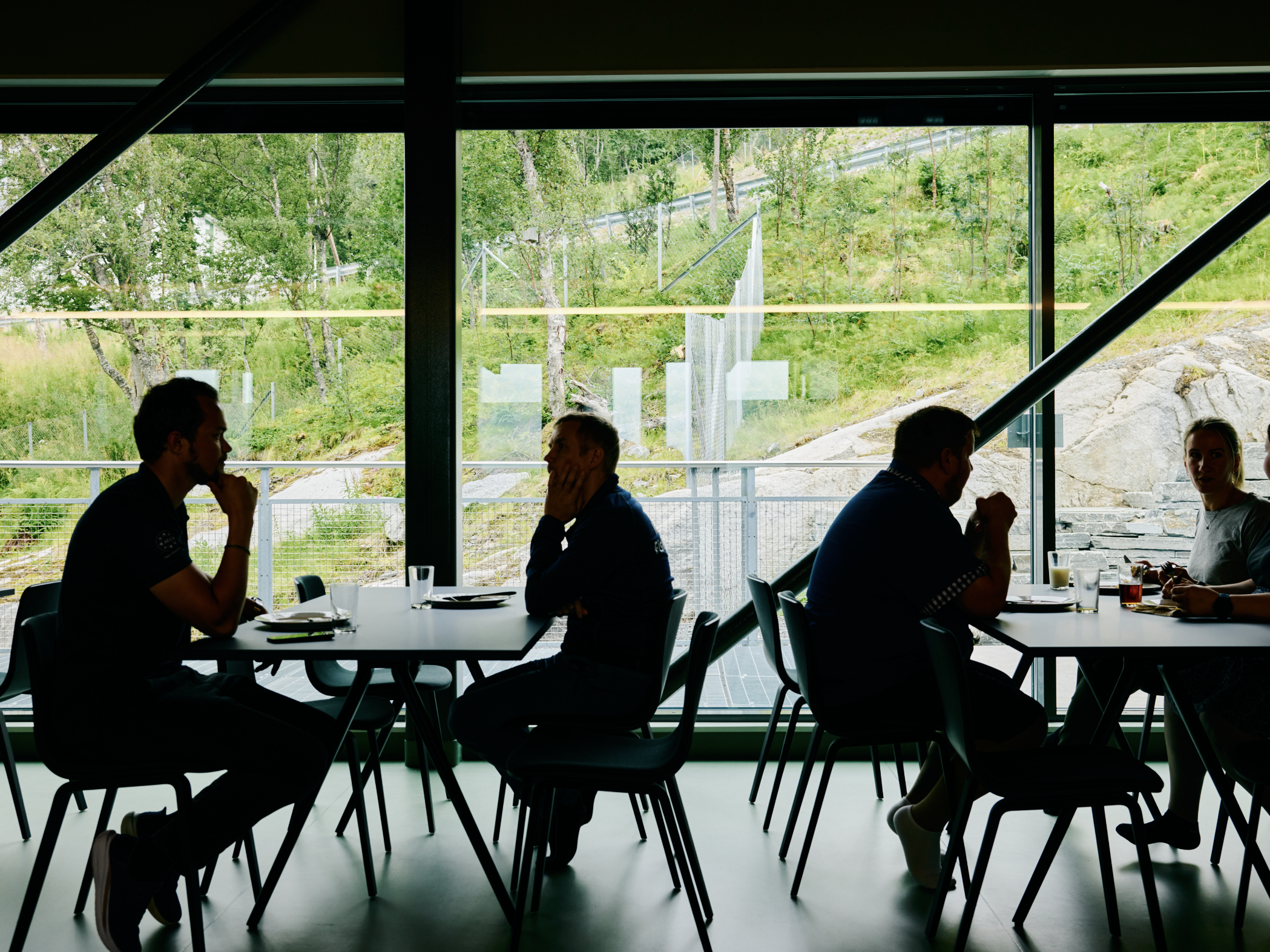 Siden alle ansatte arbeider i egne kontorer med fokus på ro og konsentrasjon, er uformelle møteplasser særlig vektlagt. Brede korridorer utenfor møterommene og en kantine i et solfylt, skjermet hjørne fungerer som viktige sosiale knutepunkter. Kontrollrommet er selve hjertet i driften, med lys og utsikt nøye komponert for å støtte konsentrasjon og samarbeid.