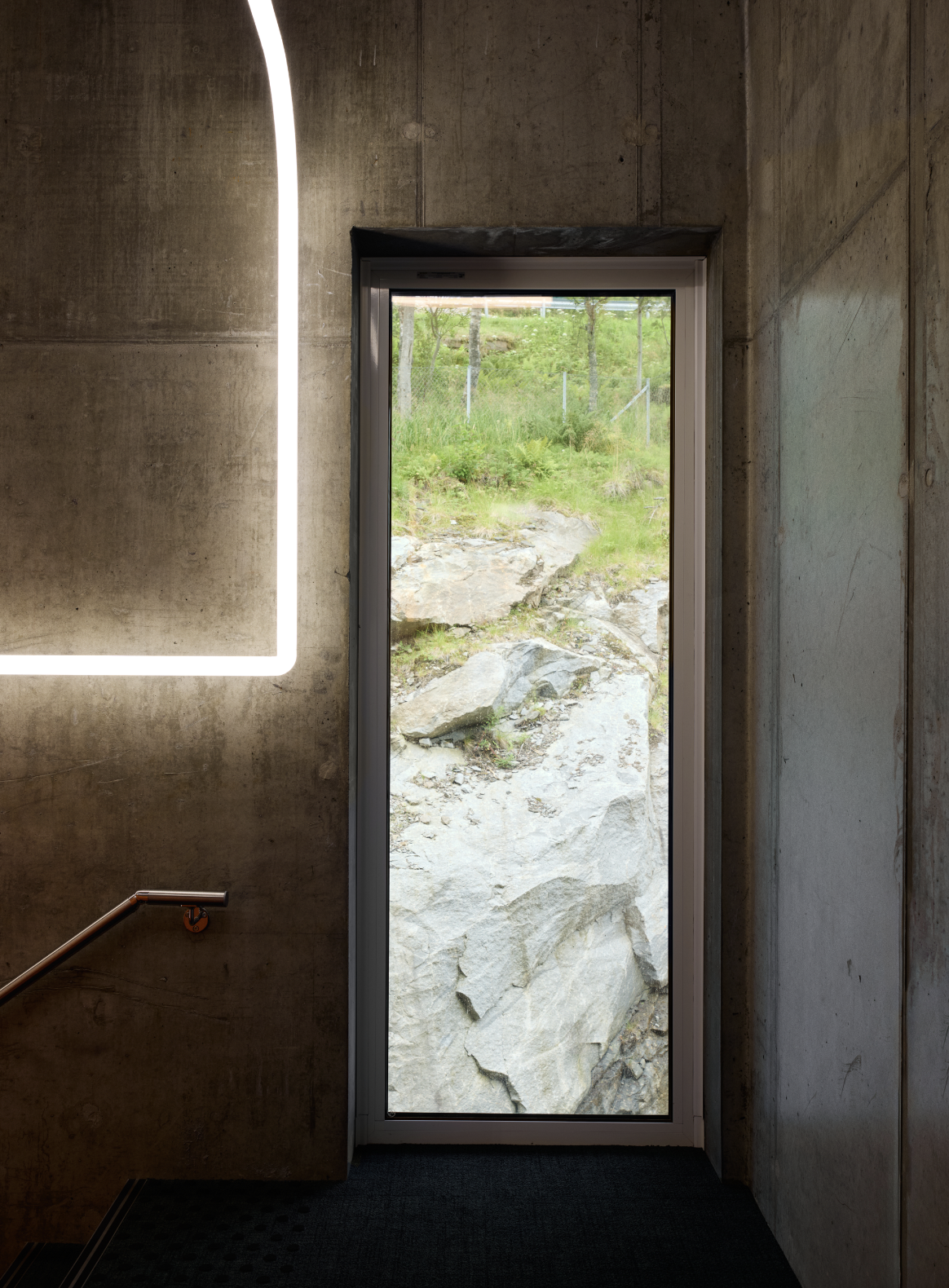 Det nye hovedkvarteret til den familieeide fiskeribedriften Magne Arvesen & Sønner er reist på en krevende tomt – smal, bratt og vendt mot nord. Med en form som speiler åssiden bak, kobler bygget seg til det øvre terrenget og strekker seg ut over kaia, forankret i en slank betongfot kledd i cortenstål.