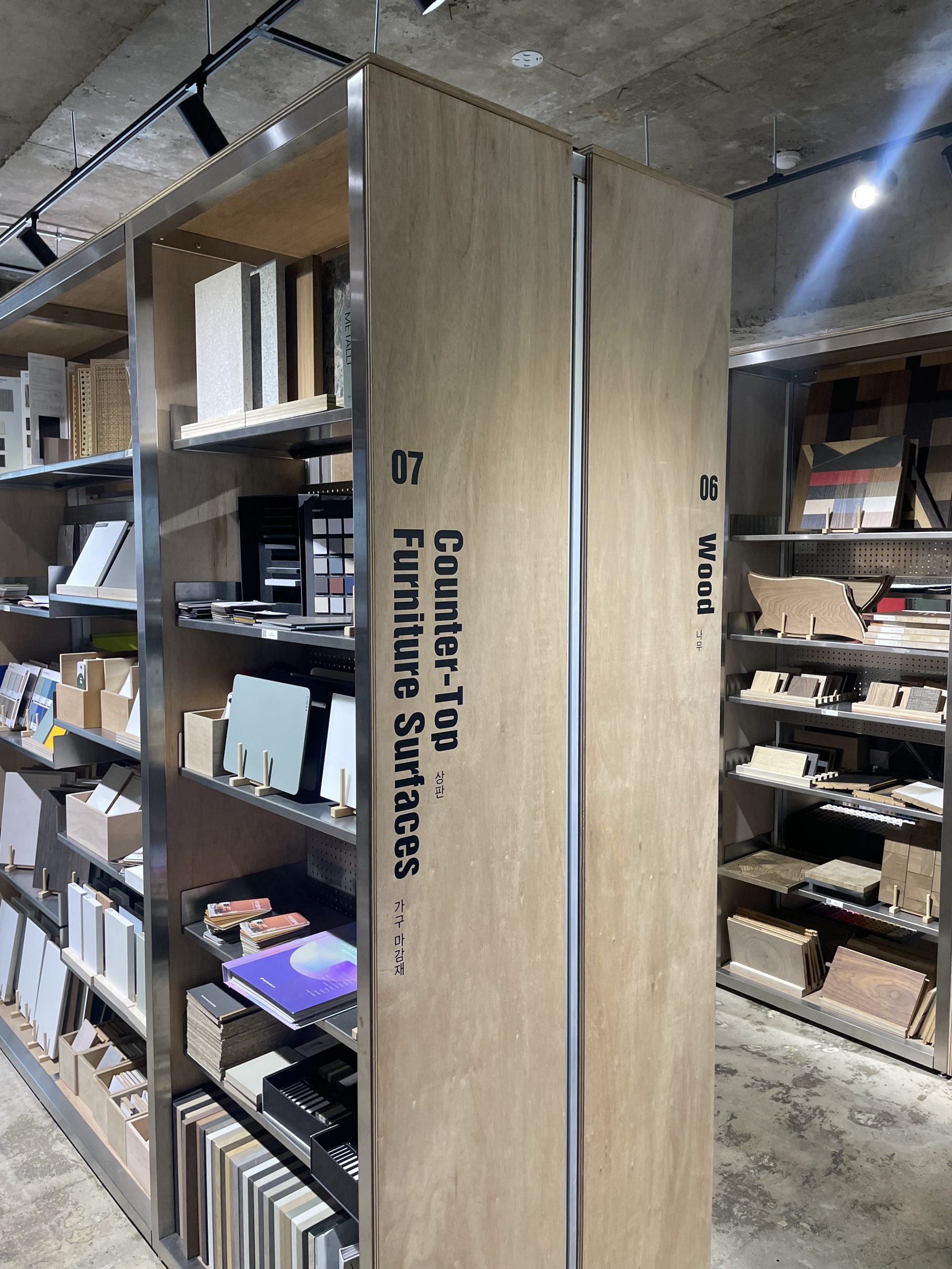 Materialbiblioteket ligger i et lyst og innbydende lokale i andre etasje i et bygg sentralt i byen. Biblioteket springer ut av YounHyun, et selskap som siden 1996 har levert bygge- og interiørmaterialer med fliser som sitt spesialfelt. I 2011 etablerte de sitt kreative studio, Space B-E, som i dag fungerer som hjernen bak både materialbiblioteket og de skiftende utstillingene i bygget. Biblioteket er åpent for alle, og gir god mulighet til å utforske et bredt utvalg av materialer.