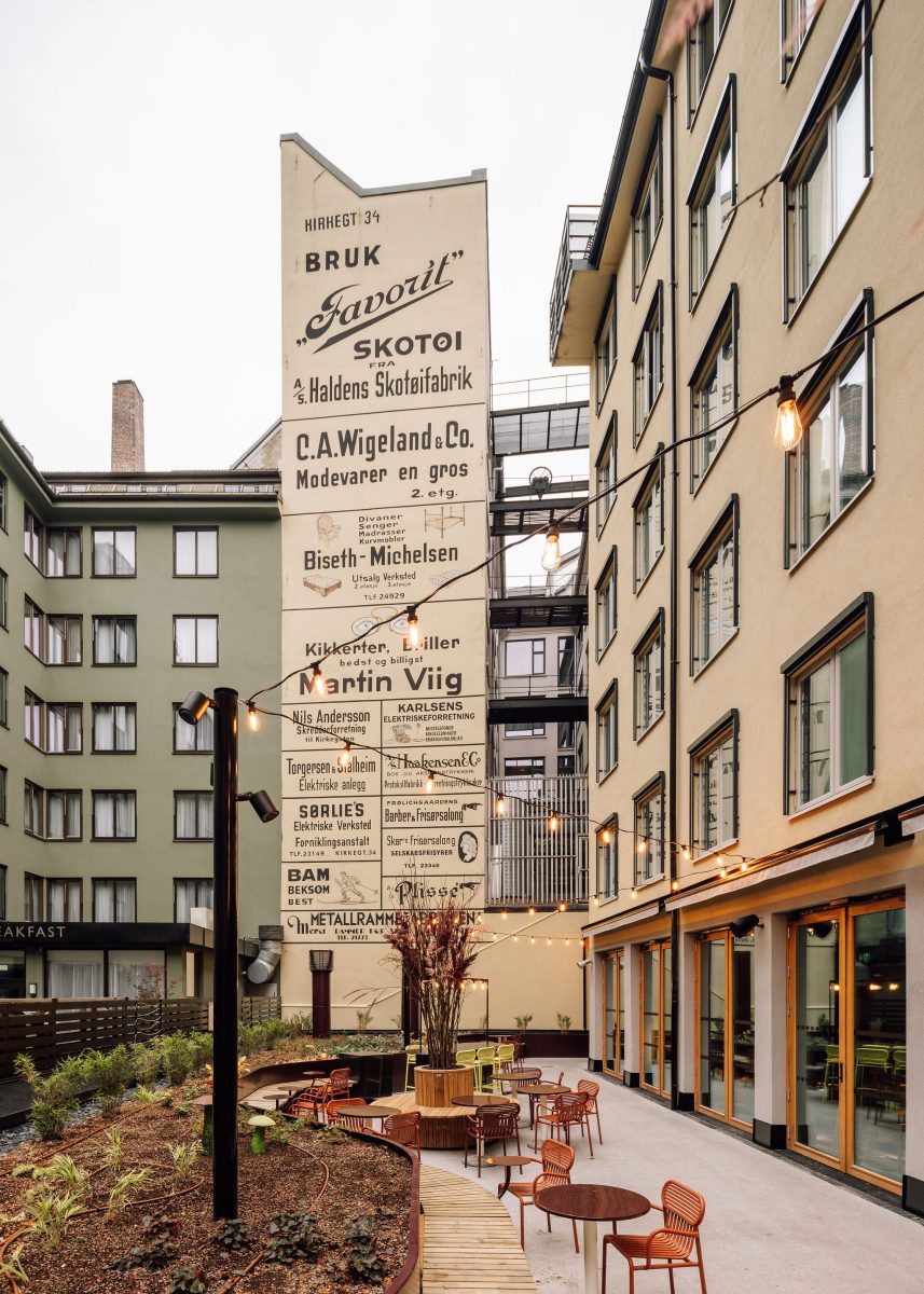Her har gårdeier, Eiendomsspar gjort en vanvittig god jobb. De har tatt tre tidligere kontorbygg og sydd dem sammen til ett helhetlig hotell. Infillprosjektet er løst på en måte som gir bygget en helt egen puls: glasstaket som slipper lyset inn, og stålbuen som binder konstruksjonene sammen, fungerer som et naturlig nav i hele huset, beskriver hotelldirektøren.