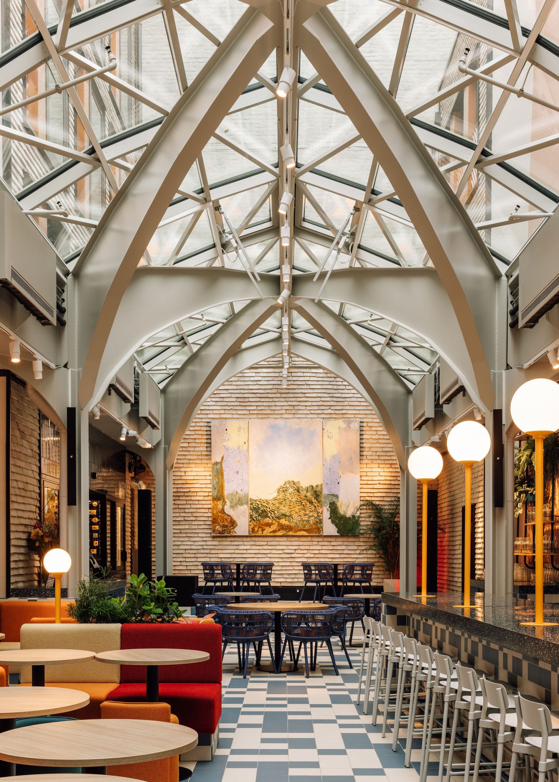 Her har gårdeier, Eiendomsspar gjort en vanvittig god jobb. De har tatt tre tidligere kontorbygg og sydd dem sammen til ett helhetlig hotell. Infillprosjektet er løst på en måte som gir bygget en helt egen puls: glasstaket som slipper lyset inn, og stålbuen som binder konstruksjonene sammen, fungerer som et naturlig nav i hele huset, beskriver hotelldirektøren.