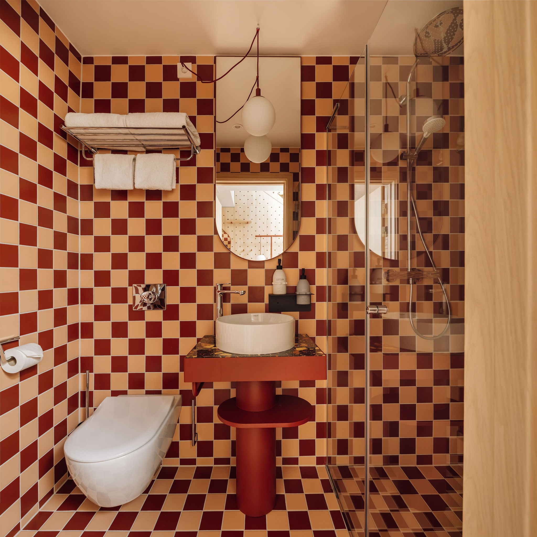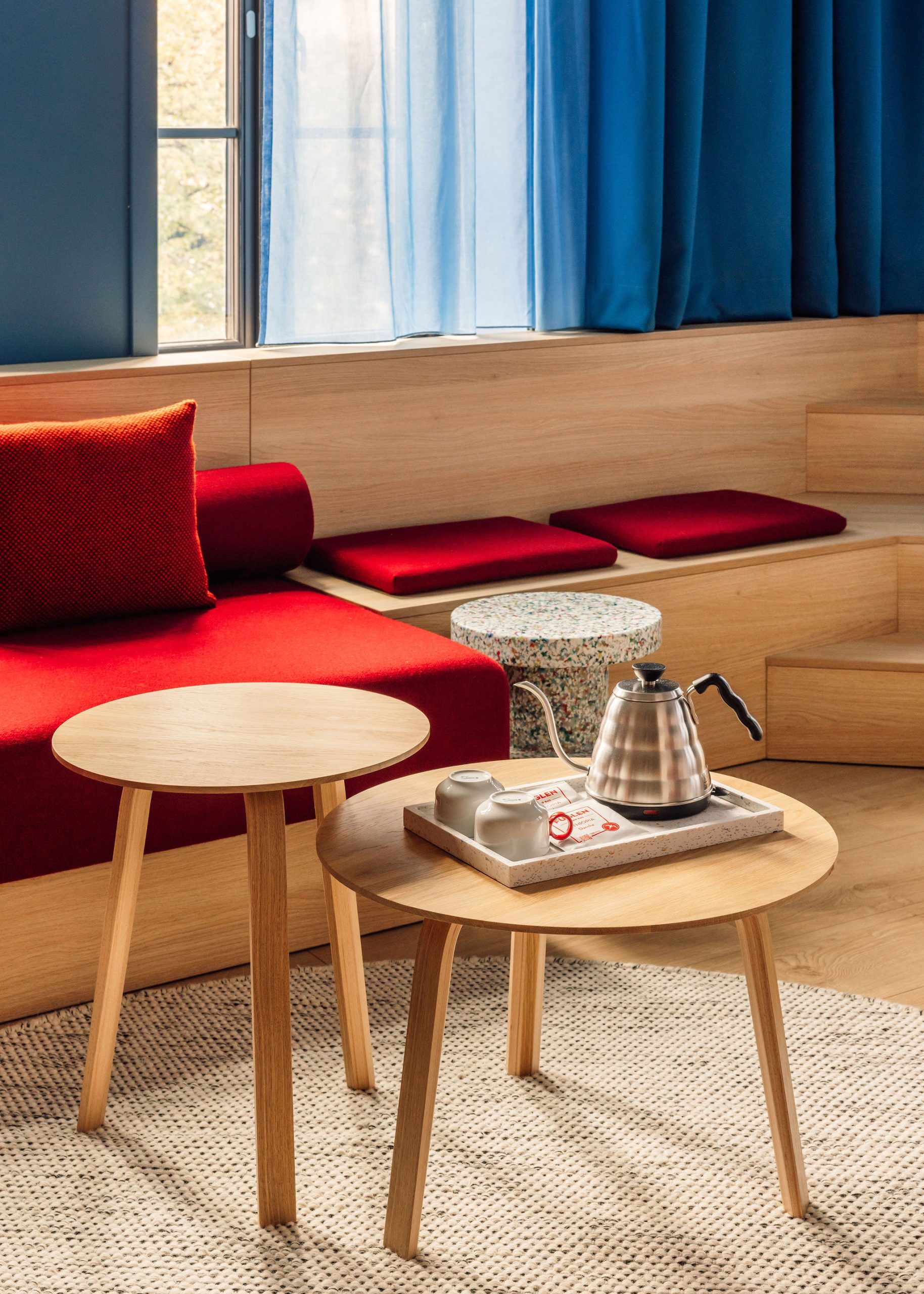 I restauranten kler disse mønstrene sofaer, i biblioteket finner du dem i andre fargepaletter. På terrassen kan gjester sveipe seg inn i Kikis Patchwork-ullpledd, vevd på Grinakervev – en moderne tolkning av de nostalgiske bestemorspleddene. Plesner håper at folk legger merke til detaljene i mønstrene over tid, at man ser nye ting jo lengre man sitter der, at de vekker nysgjerrighet, gir glede og minner om at hotell kan være mer enn bare et sovested.